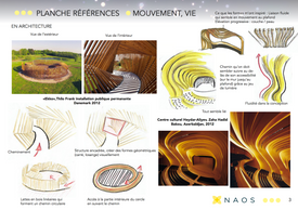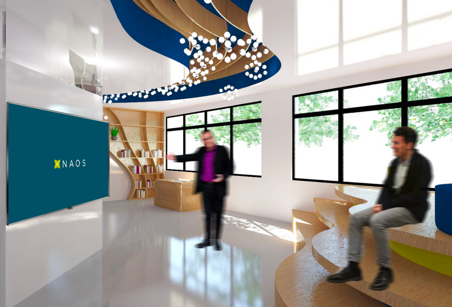 Ce projet était un concours entre plusieurs écoles qui consistait à aménager un centre de culture pour l'entreprise NAOS. Afin de pouvoir mieux connaître et comprendre la marque et ses valeurs, les clients nous ont fait la demande qu'on aménage ce centre dans une ambiance qui reste en adéquation avec celle-ci. Nous avons donc choisis de jouer sur les formes organiques, courbes qui donnent une fluidité au lieu.
